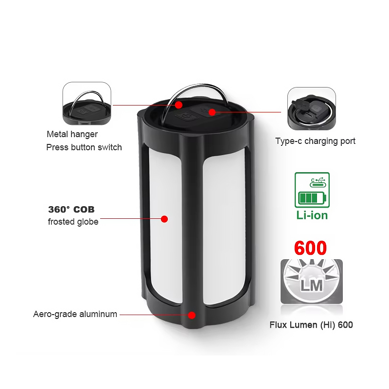 Product Highlights: The 360?? Portable Camping Lantern is designed for outdoor camping, nighttime illumination, and emergency backup. Compact and lightweight, it offers long-lasting battery life and three adjustable brightness levels, providing comfortable lighting in any environment. Product Specifications: Luminous Flux (Brightness): High: 600 lumens, runtime approx. 2.5 hours Medium: 150…