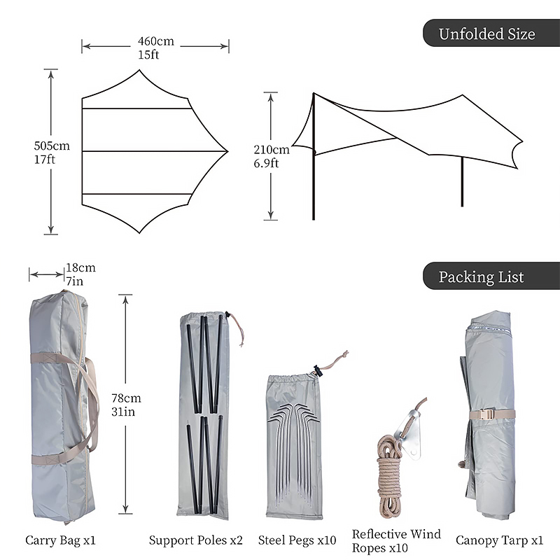Material This canopy is made of high-quality Oxford fabric, which is durable and resistant to wind, rain, and UV rays. With a thickness of 3.5mm, it provides excellent coverage and protection during outdoor use. Waterproof Performance The outer canopy has a waterproof rating of over 3000mm, effectively keeping rain out…