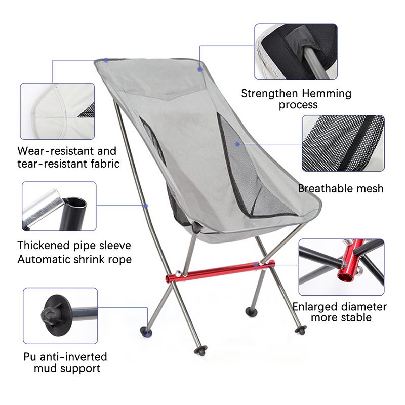 Material Aluminum Alloy Frame + Oxford Fabric Seat Product Details Lightweight and Durable ?C Your Outdoor Companion Made with a high-strength aluminum alloy frame, this chair is sturdy yet lightweight, making it easy to carry. Reliable and durable, it can support various outdoor activities. Comfortable Backrest Design The seat is…